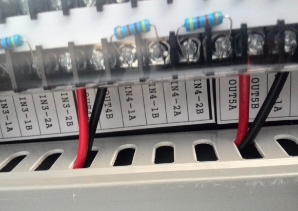 輸出模塊的音源線(AC120V)嚴(yán)禁與二總線(DC28V)混接,會造成設(shè)備燒損。